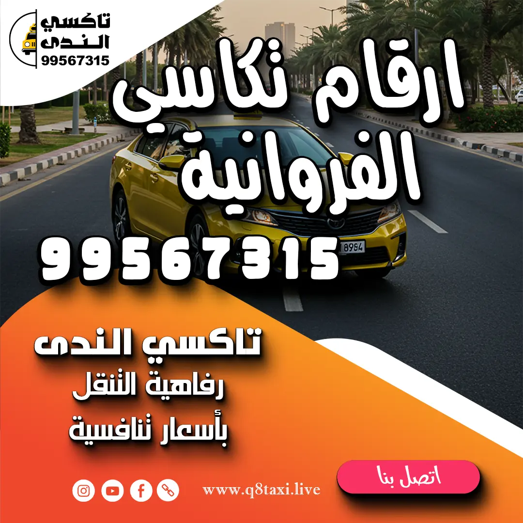 ارقام تكاسي الفروانية السريعة: تاكسي الندى 99567315 – الأقرب والأكثر أمانًا لخدمتك في الفروانية